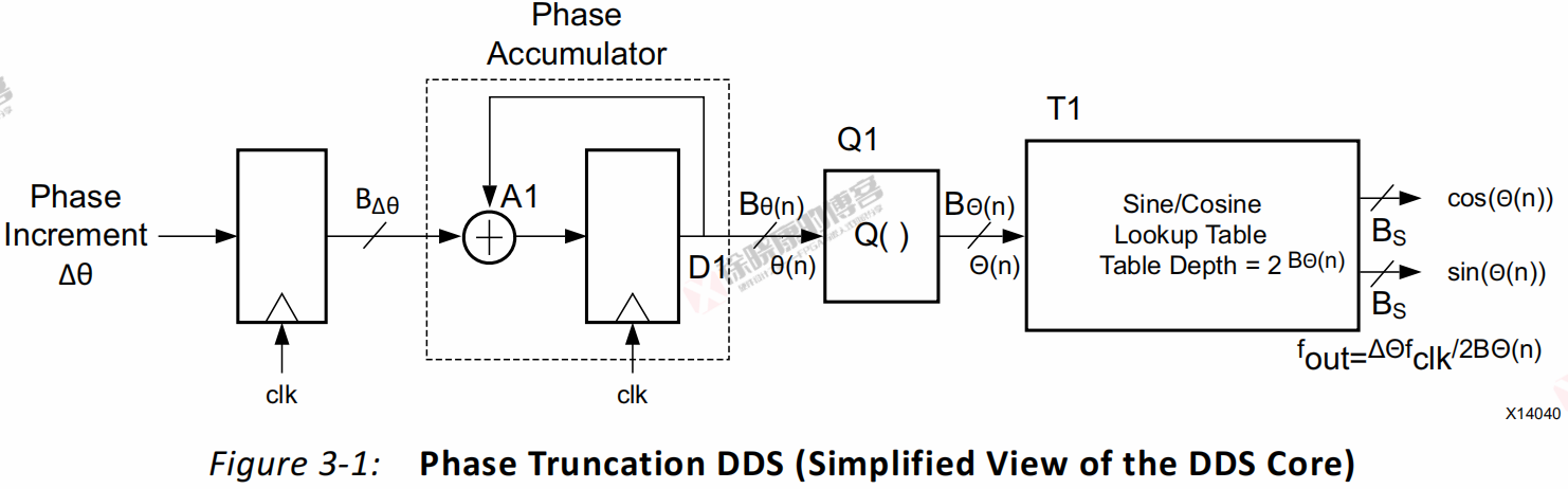 DDS的累加、截断和查表其实很简单,如何使用较少资源来抑制杂散才是设计DDS的关键,但对于IP使用者来说,了解即可。
