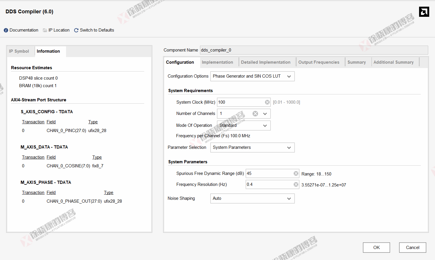 Xilinx IP解析之DDS Compiler v6.0(2)—— IP信号接口、配置与仿真