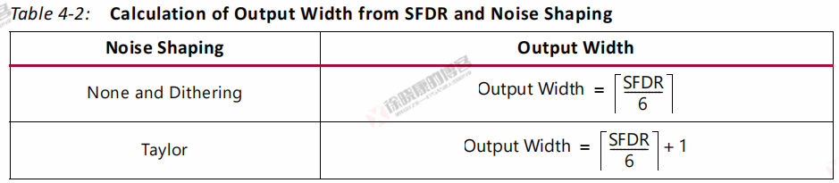 从SFDR和噪声整形计算输出宽度: